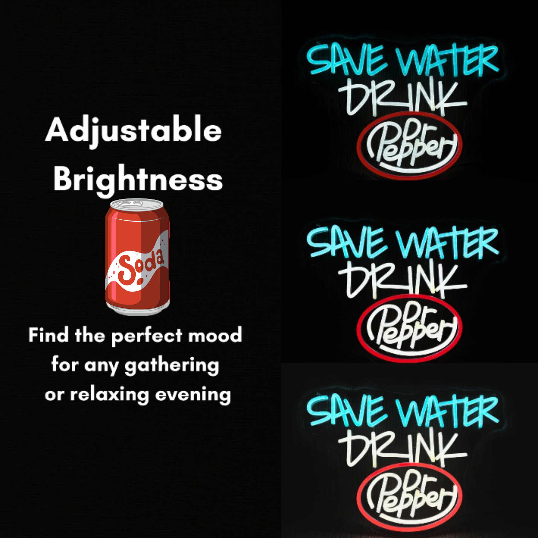 Add a splash of personality and a pop of color to your space with our "Save Water, Drink Dr Pepper" LED Neon Sign. Featuring the legendary Dr Pepper logo and a witty call to action, this sign is the ultimate statement piece for soda lovers and collectors alike. Whether it’s for your kitchen, game room, or home office, this sign brings that nostalgic soda-fountain glow into the modern era.